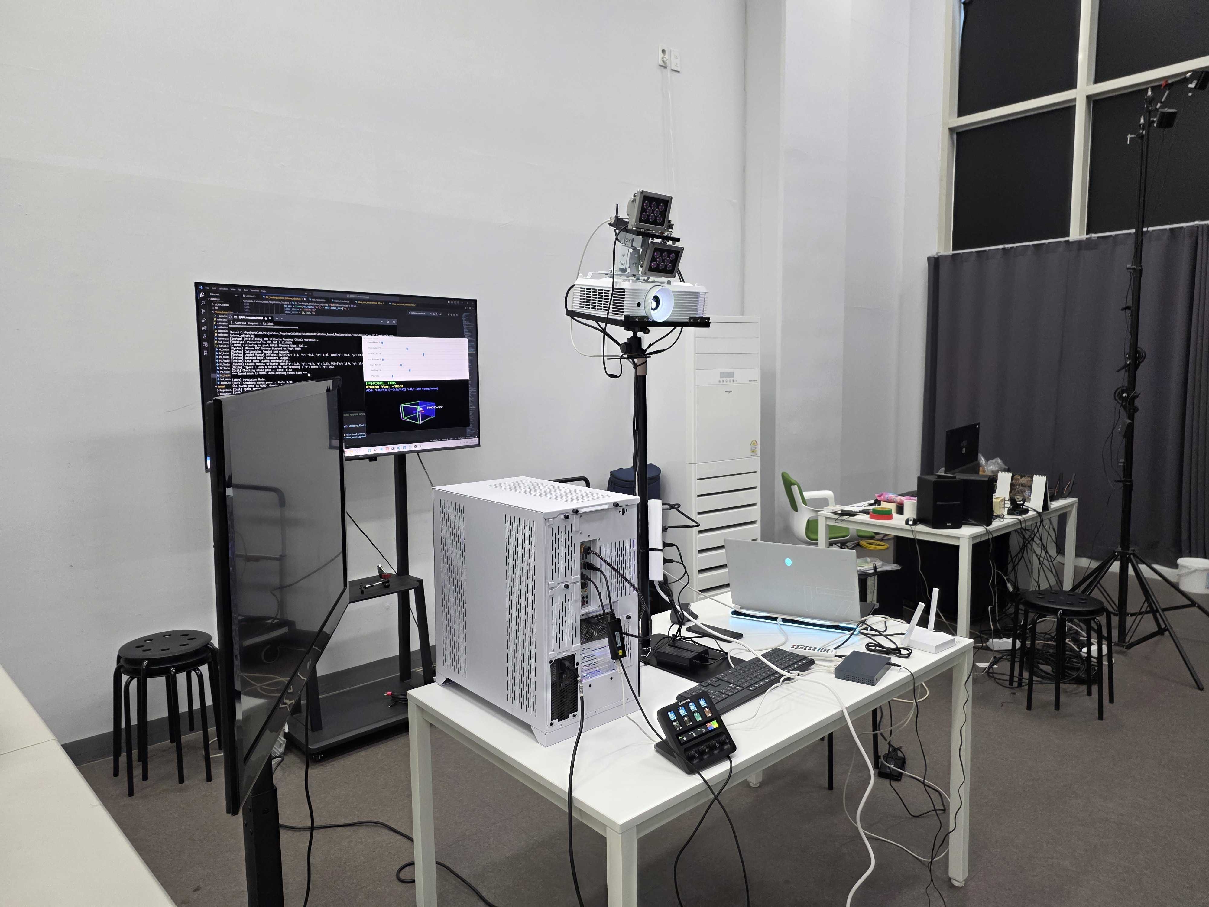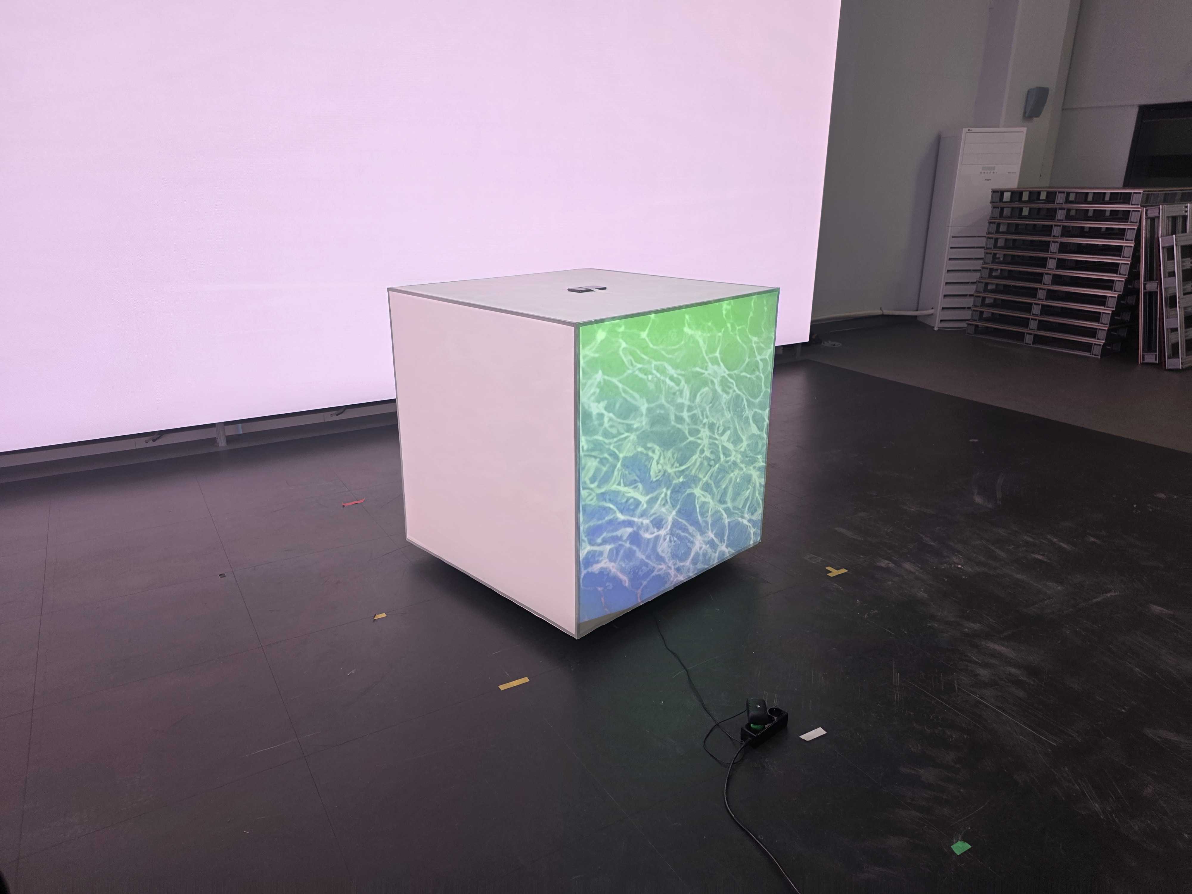 실시간으로 현실의 정보값을 디지털 트윈화 하기 때문에 빔과 객체가 이동하는 것과 상관없이 매번 정교한 프로젝션 맵핑이 가능하다.
